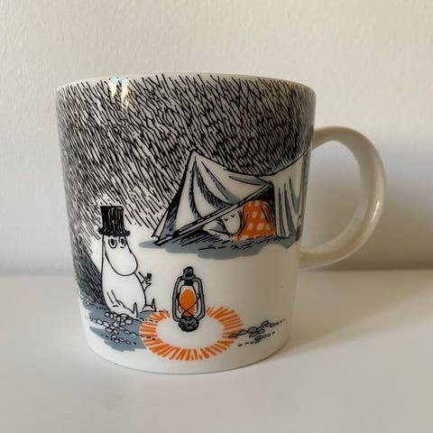Ennen tuli keräiltyä muumimukeja, nykyään ei. Muutama muki riittää itselleni ja tämä myynnissä, koska ei ole tarvetta. Tarra paikallaan ja käyttämätön.