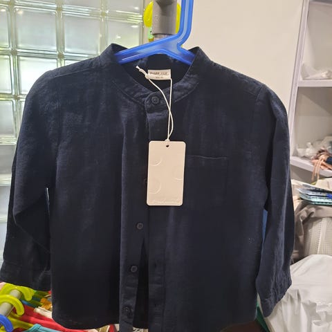 POMPdeLUX poikien kauluspaita, koko 98. Sininen pitkähihainen kauluspaita, jossa vaalea raidallinen ja kuvioitu kuosi. Materiaali on 100 % puuvillaa. Paidassa on nappikiinnitys edessä ja hihansuissa. Soveltuu arki- ja juhlakäyttöön. Toisesta hihansuusta puuttuu nappi, mutta paidassa on mukana varanappeja. Juhlakuntoinen vielä.