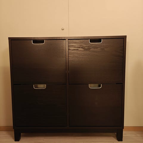 Myynnissä lähes uudenveroinen IKEA Ställ kenkäkaappi neljällä lokerolla.