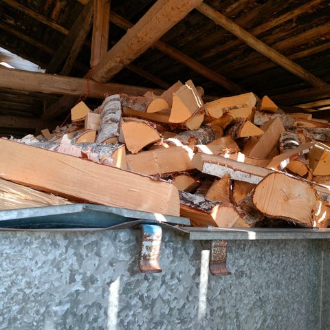 Kuivia metrin halkoja kymmenen kuutiota, yli puolet koivua.