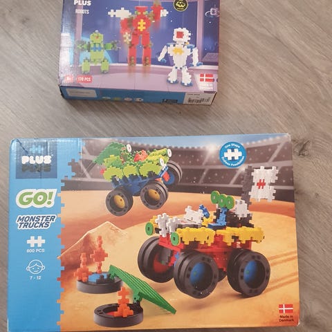 Iso setti plus plus mini -palikoita, sisältää n. 900 palaa (480g) plus plus -paloja, 4 rakennusalustaa sekä kaksi mallilehtistä.