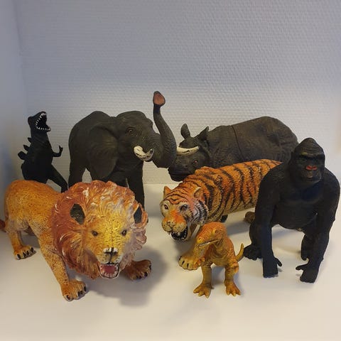 Muoviset villieläimet. 2 isoa, muut pienempiä. Hyvä kunto