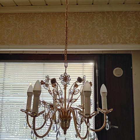 Näyttävä kristallikruunu, korkeus n.100cm. Hp. 280e/tarjous. Säilytyksessä pölyyntynyt. Nouto ruutukaavalta.