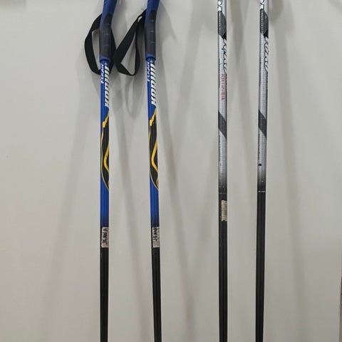 Sport Fibre hiihtosauvat, pituus 95 cm. Sauvoissa harmaat putket ja mustat muovikahvat rannelenkeillä sekä mustat sommat metallipiikeillä. Soveltuvat perinteiseen hiihtoon esimerkiksi lapselle tai lyhyemmälle hiihtäjälle.