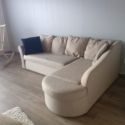 Erittäin siisti kulmasohva tarpeettomana. Ei vuodesohva. Ei tupakoitu, eikä lemmikkieläimiä.