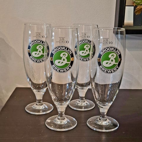 Neljätoista Brooklyn Brewery -logolla varustettua olutlasia, joiden tilavuus on 0,4 litraa. Lasit ovat kirkasta lasia ja niissä on uritettu pinta. Brooklyn Brewery on tunnettu panimo, ja nämä lasit ovat osa heidän brändiään.