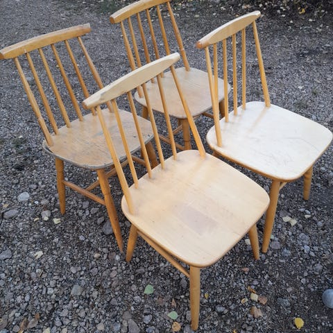 Vintage mustat pinnatuolit. Käytetty kunto. Vaatii pientä liimausta poikkipuihin. Meillä ollut näin käytössä. 4kpl Nouto Kotkansaari.
