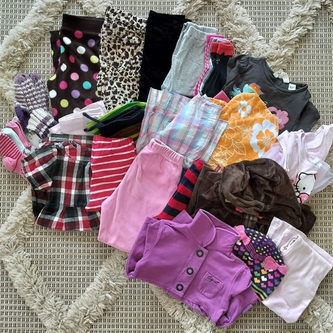 Myydään tyttöjen vaatepaketti. Vaatteet ovat pääasiassa hyväkuntoisia, muutamaa pidetty vähän enemmän, mutta edelleen hyviä arkivaatteita seuraavalle.