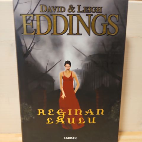 Eddings Reginan laulu kirja. Kovakantinen teos, jonka kannessa on kuvitus naisesta punaisessa mekossa. Kirja kuuluu fantasiakirjallisuuteen ja soveltuu luettavaksi suomen kielellä julkaistuna painoksena. Siisti mutta tupakkatalous ollut