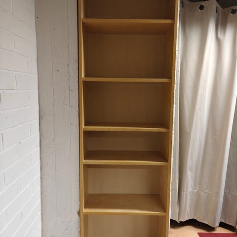Korkea puunvärinen (pyökki?) Ikean Billy-hylly
