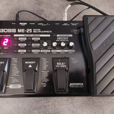 Boss ME-50 kitaran multiefektilaite. Laitteessa on useita erillisiä efektiosastoja, kuten särö/overdrive, modulaatio ja delay, jotka valitaan ja säädetään omilla potikoillaan. Kolme jalkakytkintä mahdollistavat eri efektipankkien ja toimintojen kytkemisen päälle ja pois soittaessa. Lisäksi laitteessa on integroitu expression-pedaali esimerkiksi wah- tai volyymitoimintoja varten.