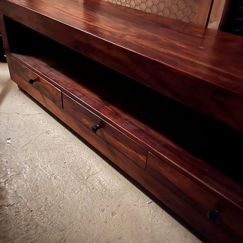 Ok kuntoinen jämäkkä valkoiseksi itse maalattu acasia tv taso. Maalauksessa näkyy diy-työskentely, tästä syystä kunto luokitus kohtalainen.