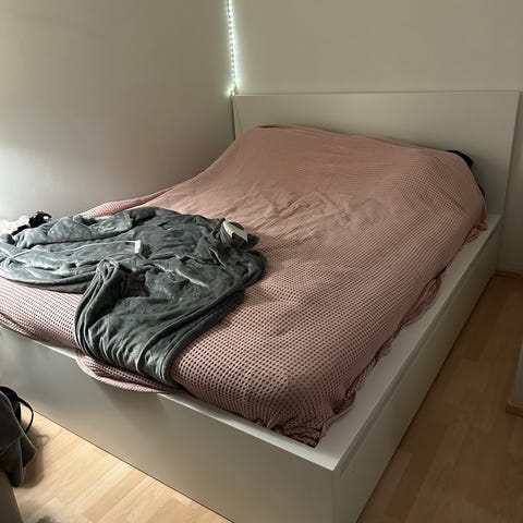 Ikea Malm sängynrunko, jossa säilytystilaa. Todella siisti ja hyvässä kunnossa! Mittakuva lainattu Ikea sivuilta. Sälepohja nousee ylös ja alle mahtuu paljon tavaraa säilöön.