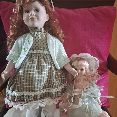 Kaunis istuva iso nukke. Ollut somisteena. Moitteeton kunto.