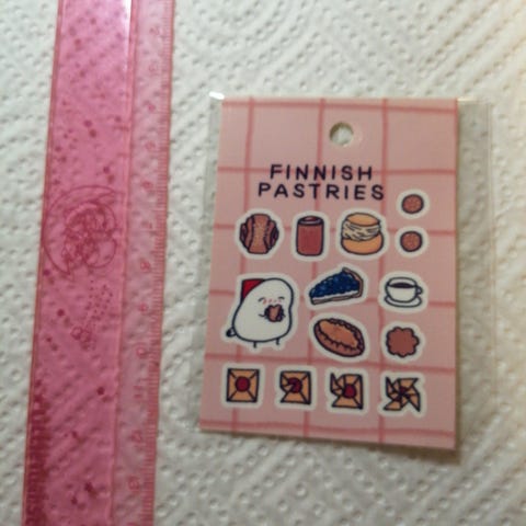 Neljä kappaletta kiiltäväpintaisia vinyylitarroja. Originaalitaidetta.