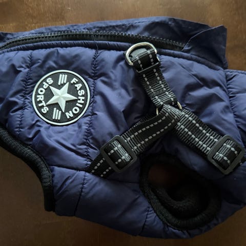 Pienelle koiralle takki, kuppi, valjaat, pantoja - eri hintoja