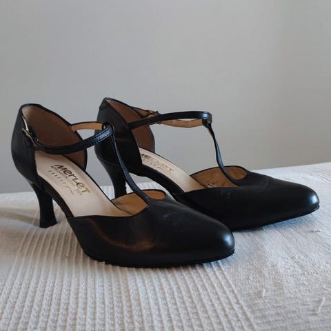 Miesten argentiinalaiset Tango-kengät. Valmistettu nahasta, pohja myös nahkaa. Väri kermanvärinen, mutta kengät ovat naarmuuntuneet aktiivisen käytön vuoksi. Mukavat. Koko 44 (leveä), merkki: Madame Pivot.