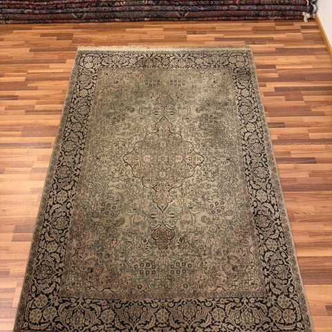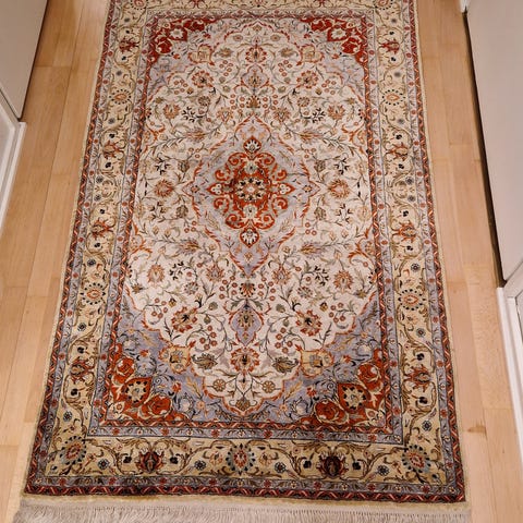 Upea käsinsolmittu persialainen Qum-silkkimatto.