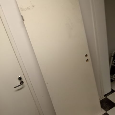 2 kpl ovista on uudenveroisia( 15e kpl) ja yhdessä ovista pieni reikä alakulmassa 10e (kuva).