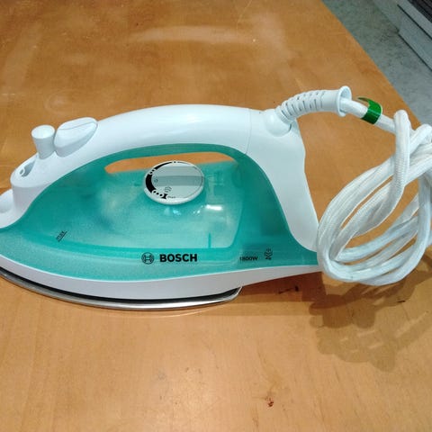 Bosch höyrysilitysrauta kotikäyttöön. Väriltään vihreä-valkoinen, varustettu höyrytoiminnolla ja lämpötilansäätönupilla eri tekstiilimateriaaleille. Teräksinen pohjalevy. Pientä kulumaa pohjalevyssä.