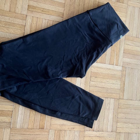Lululemonin mustat leggingsit koko 10. Ostettu käytettynä mutta olivat itselle liian isot harmillisesti. Haaraosasta vähän nukkaantunut mutta saa varmasti nukkaimurilla tms pois
