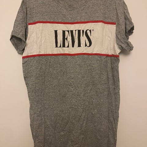 Levi’s harmaa t-paitamekko. Käytetty, mutta hyväkuntoinen. Koko L. Hp. 10e