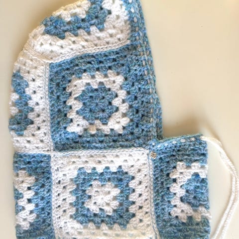 Myydään käsintehty vaaleansininen uusi balaclava. Virkattu neulelangasta, jossa on 70 % villaa ja 30 % polyamidia.