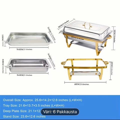 Ruostumaton teräs buffet-chafing setti 6 kpl suorakaiteen muotoinen, hopea/kulta