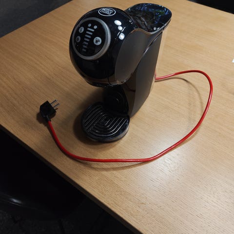 Dolce Gusto kapselikahvinkeitin musta. Laitteessa on vesitankki laitteen takana ja virtajohto pistotulpalla. Soveltuu Dolce Gusto -kahvikapseleille erilaisten kuumien juomien, kuten kahvin ja kaakaon, valmistukseen. Toimii ongelmitta.