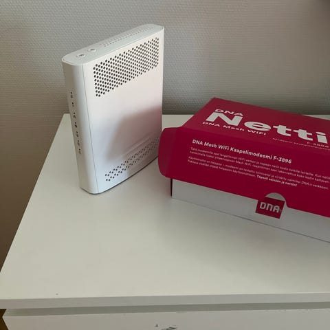 Myydään itselle tarpeeton DNA Mesh Wifi F-3896 -kaapelimodeemi. Mukana kaikki tarvittava + pitkä Ethernet-kaapeli. Modeemin hinta DNA-kaupassa 201€.