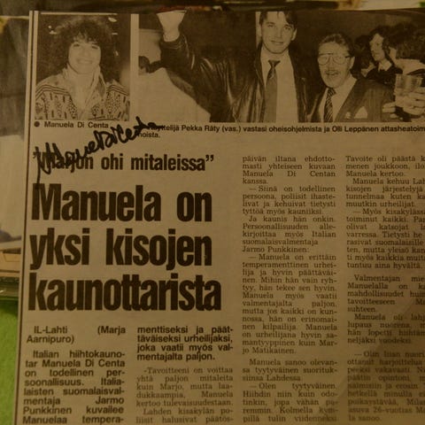 Näyttelijä Emma Thompson Suomessa 1998. Käsin pimiössä vedostettu värivalokuva. Koko n. 28 x 38 cm. 50€/kpl,