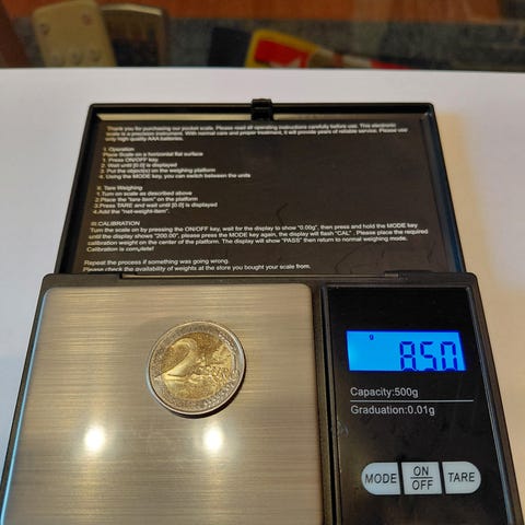 Kuvien mukainen tarkkuusvaaka. Mittaus 0,01 gramman tarkkuudella. Käyttää 2 x AAA paristoja. Toimii. Käytön jälkiä, kansi tallessa mutta saranat rikki, toimii silti suojana.