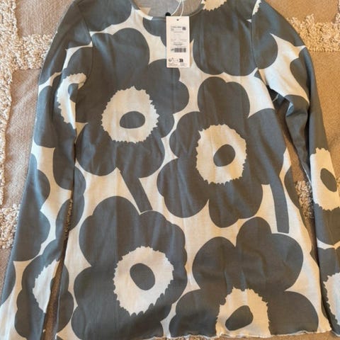 Marimekko Unikko tunikaKoko L. Materiaali puuvillaa. Pitkähihainen malli, jossa pyöreä pääntie. Kuosina klassinen Unikko-kukkakuviointi tummissa ja vaaleissa sävyissä. Sopii arki- ja vapaa-ajan käyttöön.