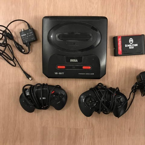 Region ja hertzi 50/60 kytkimellä varustettu toimiva mega drive. Mukaan triplepass parempi vahvistinmodi (vaatii kolvaamisen paikalleen) firebrandx valmistama, toimivana poistettu käytöstä toisesta megadrivestä. Mukaan myös laadukas rgb johto, alkuperäinen krikzz storesta ostettu sega everdrive x3, sekä kuvan ohjaimet.