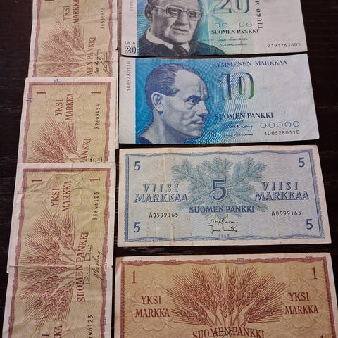 Setelit; 20mk , 10mk ,5mk heikkokuntoiset