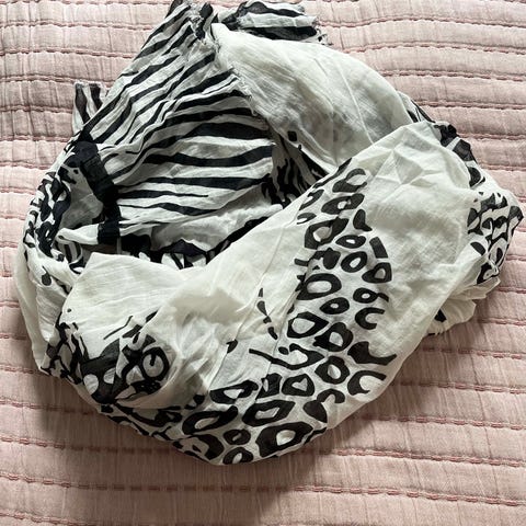 Seepra kuvioinen mustavalkoinen uudenveroinen, kerran pidetty Pareo huivi / rantahame.