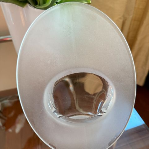 Timo Sarpanevan Iittalalle suunnittelema Marcel- maljakko. Korkeus 19 cm, ovaalin koko 23 cm x 17.5 cm. Kirkas/ matta. Iittalan tarra paikallaan, täysin ehjä. Myynnissä myös pienempi samanlainen omalla ilmoituksella.