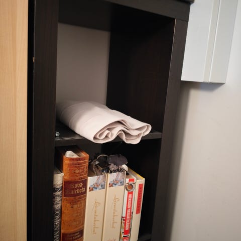 Metallinen harmaa hylly. Nouto Mattilanpellolta.