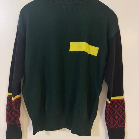 Näyttävä ja laadukas villainen neule. Ei uudelle häpeä. Koko L, melko pientä kokoa kyllä. Mitat kuvissa.