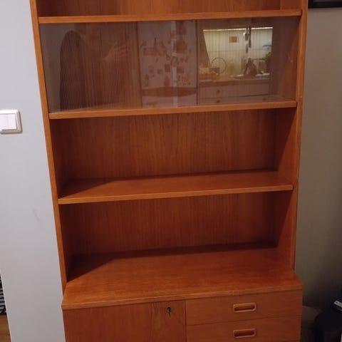 Teak hyllykkö hyvässä kunnossa.