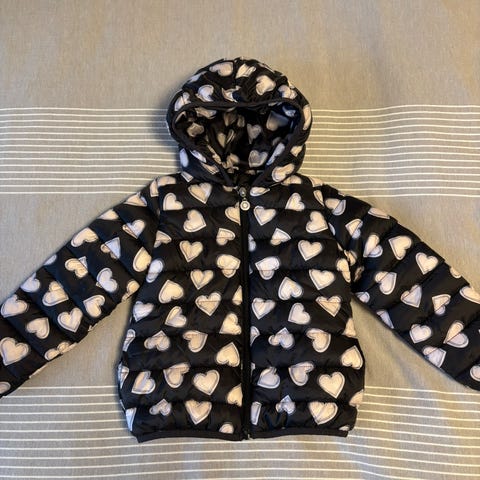 Myydään erittäin siisti ja hyväkuntoinen kevyttoppatakki, koko 98. Ollut kauppareissuilla yms. käytössä. Vyötäröllä kiristysmahdollisuus. Irrotettava huppu.