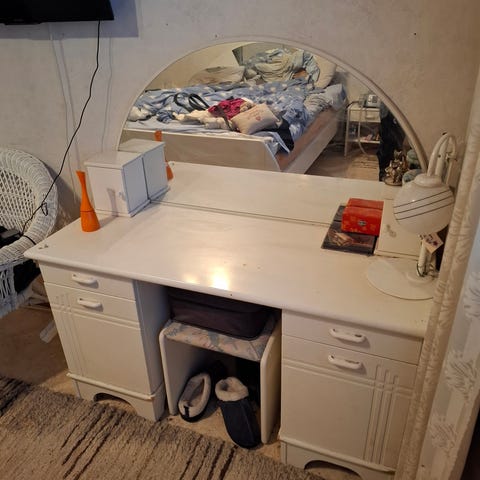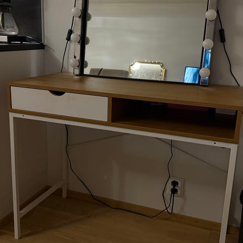 Kuvan yksilöllinen ja siro meikkaus,/kampauspöytä. Kunnossa ei moitteita.