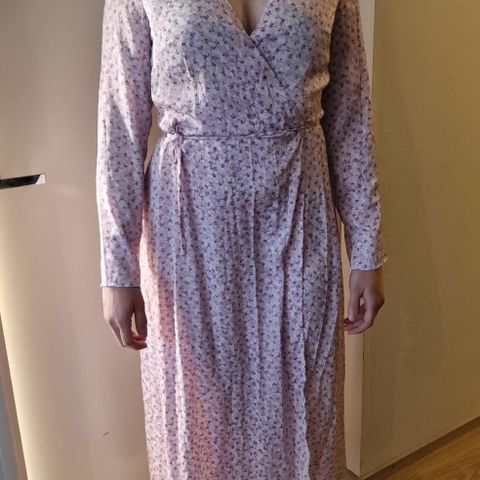 H&M mekko naisille, koko S. Mekko on valmistettu polyesteristä ja siinä on kirjavan sävyinen, eläinkuosinen kuvio. Mallissa on pitkät hihat ja kaulus, sekä napitus edessä. Reilu mitoitus