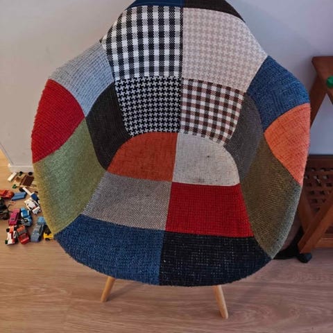 Sininen ruutukuvio tuoli.