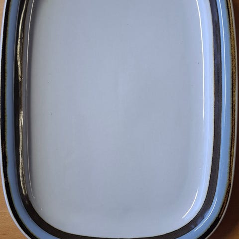 Arbian Suvanto tarjoiluastia. Kuvion on suunnitellut Raija Uosikkinen ja se on käsinmaalattu. Muutama naarmu on, en onnistunut saamaan kuvaa lasitteen kiillon takia. Mielestäni kuitenkin hyväkuntoinen. Koko n. 24x34 cm.