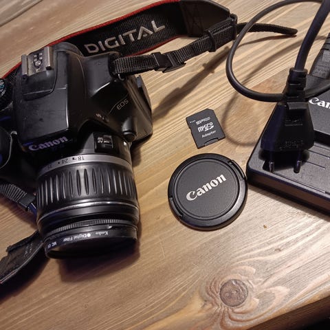 Myydään hyväkuntoinen Canonin järkkäri. Kaikki toimii, niin kuin pitää. Aloittelijalle erinomainen kamera. Mukana tulee hieman vakiota parempi objektiivi, polttoväli on 28-80mm. Mukana tulee kaikki tarpeellinen, laturi ja myös hieno kantolaukku.
