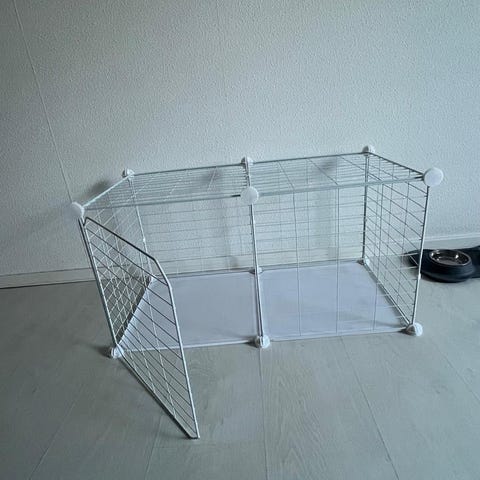Pieneläinten metallinen aitauselementti. Valkoinen metalliverkko, kulmissa muoviset liitososat. Pohjalla kaksi erillistä valkoista alustalevyä. Sopii esimerkiksi pienten lemmikkien, kuten jyrsijöiden, kanien, kissoille ja pienille koirille rajattuun oleskelualueeseen sisätiloissa. Aitauselementissä on avattava sivuosa kulkuaukkoa varten. Helppo kokoaminen ja purkaminen.