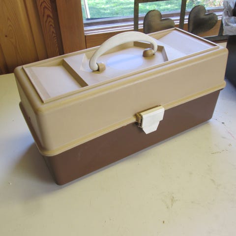 Muovinen säilytyslaatikko, jossa useita sisäpuolisia lokerikkoja pientarvikkeiden järjestämiseen. Kotelossa on kova kuori ja kantoaisa päällä. Sisällä on useita kerroksittain avautuvia lokeroita, jotka soveltuvat esimerkiksi työkalujen, pienten osien tai harrastetarvikkeiden säilytykseen ja kuljettamiseen.