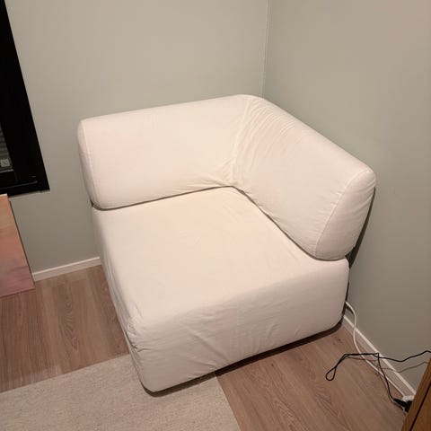 Tuolit ovat ehjät, kangas hieman käytössä kulunut mutta yleisilmeeltään siisti. Tuoleissa on muhkeat tyynyt ja ihana istua.