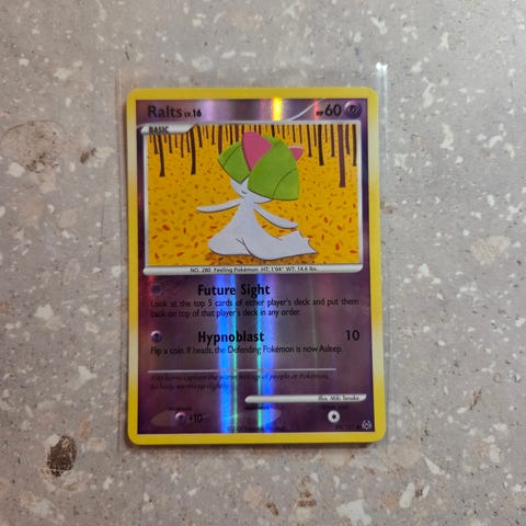 Ralts Pokemon EX Dragon Frontiers sarjasta (2006). Kortti on reverse holo ja "stamped".